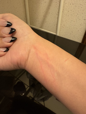 昨日は子猫をお風呂に入れたんですが最初は大人しく洗わせてくれたのですがラストお風呂から出る時浅くですが腕に爪痕を残されました笑